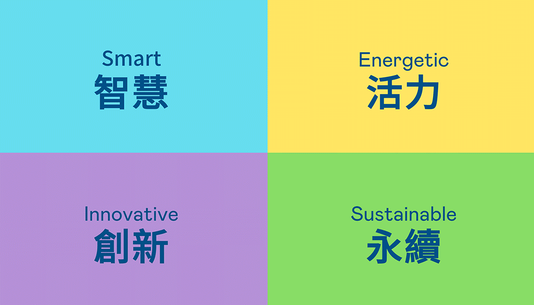從穩重、信賴的非凡游戏藍開創新色彩,注入象徵智慧藍、活力黃、創新紫、永續綠的品牌色及動態多變的幾何圖形,呼應不設限的「Possibilities」精神,代表多元的專業技術及領域,在碰撞中相互觸動、融合、延伸,持續激盪出更多新的可能性。